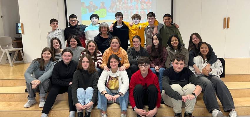 Irudian, Badihardugu elkarteko Idoia Etxeberria Elkar Hezi ikastetxeko DBH3ko ikasleekin, gaur goizean.