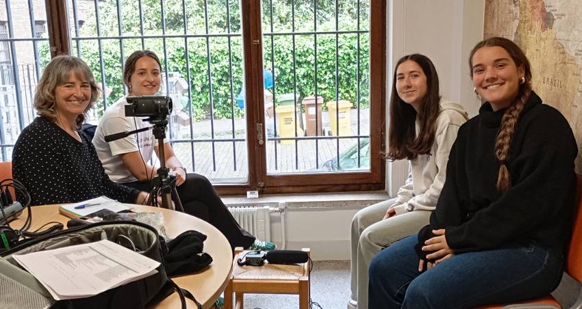 Oñatiko ikasleak esamoldeak grabatzen, herriko ondarea zabaltzeko